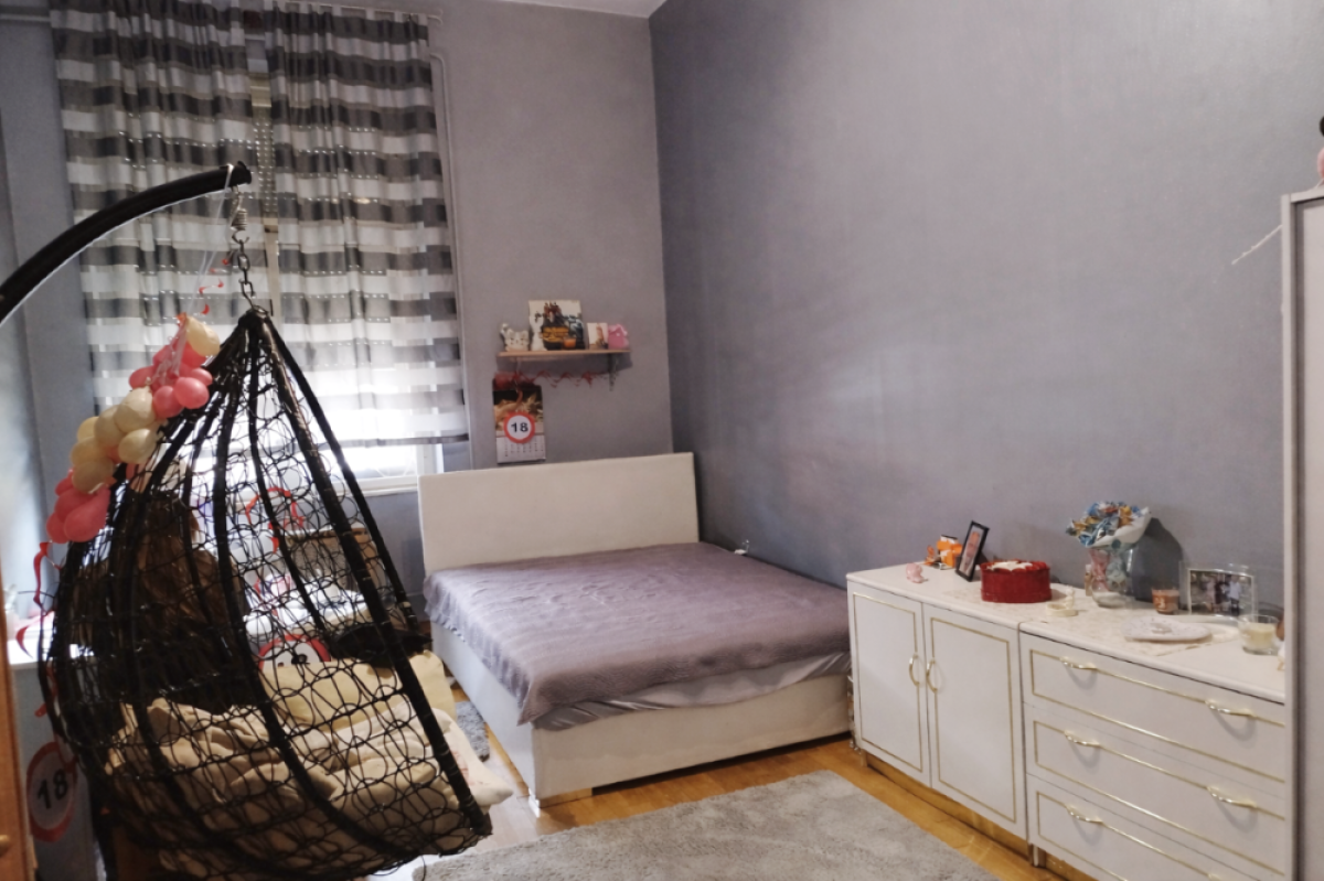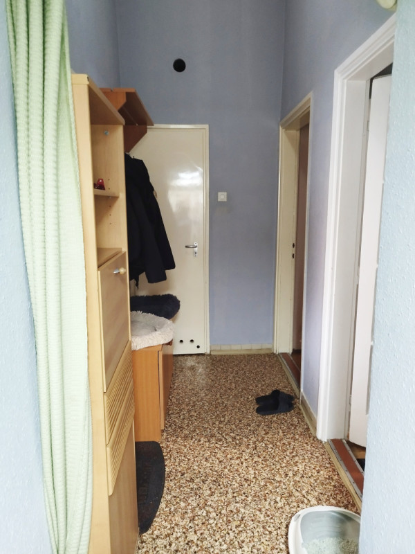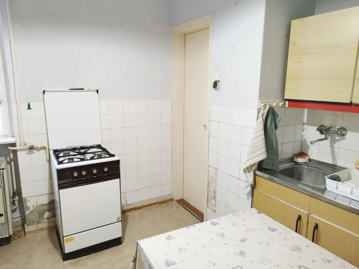 A külön nyíló szobák parkettával a konyha előszoba jó állapotú linóleummal, a fürdőszoba járólappal borított. Az előszoba, kamra cementlapos.